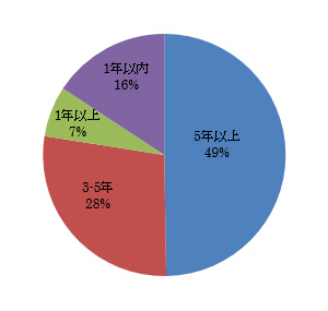 「5年以上」が49%と最も高いものの、昨年の57%から8%減少する一方、「1年以内」が昨年の10%から16%へ増加している。未だ長期投資が多いものの、従来よりも短期志向が増加しており、ここにも投資口価格の変動の高い影響が表れていると言える。