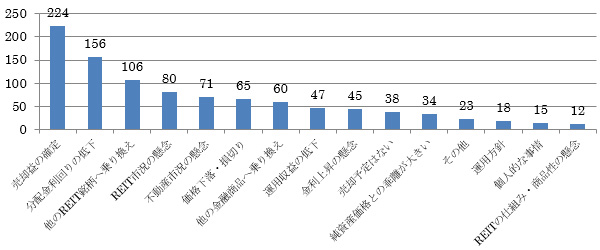 売却する要因として「売却益の確定」が突出しており、従来同様に高かった「分配金利回りの低下」を大きく引き離した。当初インカムゲインを目的としながらも、2013年に入り投資口価格が上昇したことにより、キャピタルゲインを追求する姿勢へと変化が見られる。