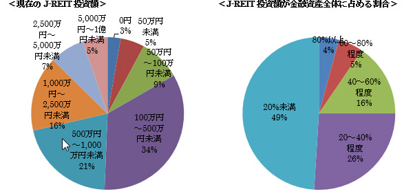 一方、REITが金融資産全体に占める割合は「20%未満」が全体の半数を占める点から、REITが分散投資の一つとして捉えられている。
