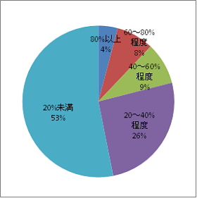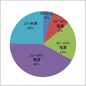 REITの投資割合を金融資産全体の「20%~40%」としたい層が、投資経験ある回答者のうち42%と最も高い割合を示した。設問5の現在の投資額と比較すると、「20%未満」が減少する一方、「20%~40%」「40%~60%」が増加している点から見て、今後REITの投資割合を高めたい意向が強い。