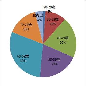 年齢別では、主要層は例年同様に40代~70代と大きな変化はみられないが、昨年と比較すると、40代及び60代が僅かに増加している点は団塊世代及び団塊ジュニア世代の人口構造が影響していると見られる。
