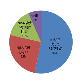 また昨年は「未定」が16%であったが、今回は7%に低下。その代わりに、「NISAをREITに使う」・「REIT以外に使う」・「NISAは使わない」がそれぞれ微増となり、NISA開設から一年が経過したことで、NISAの活用のメリット・デメリットを投資家が判断できるようになったと言える。