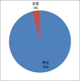 性別では、男性が96%と圧倒的に多く、例年同様女性の関心の低さが指摘できる。